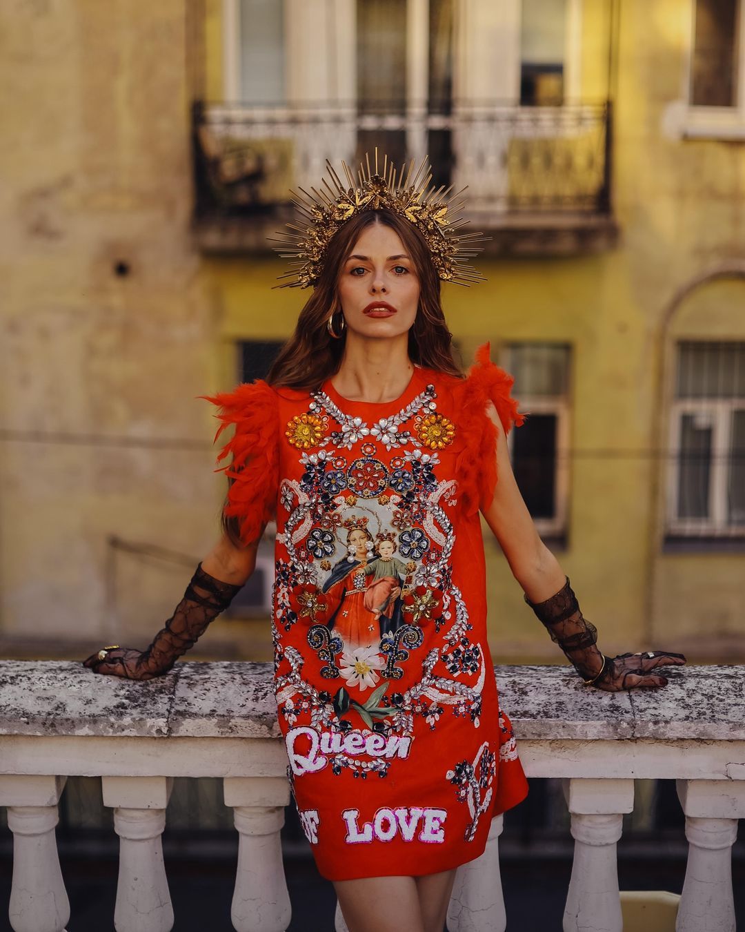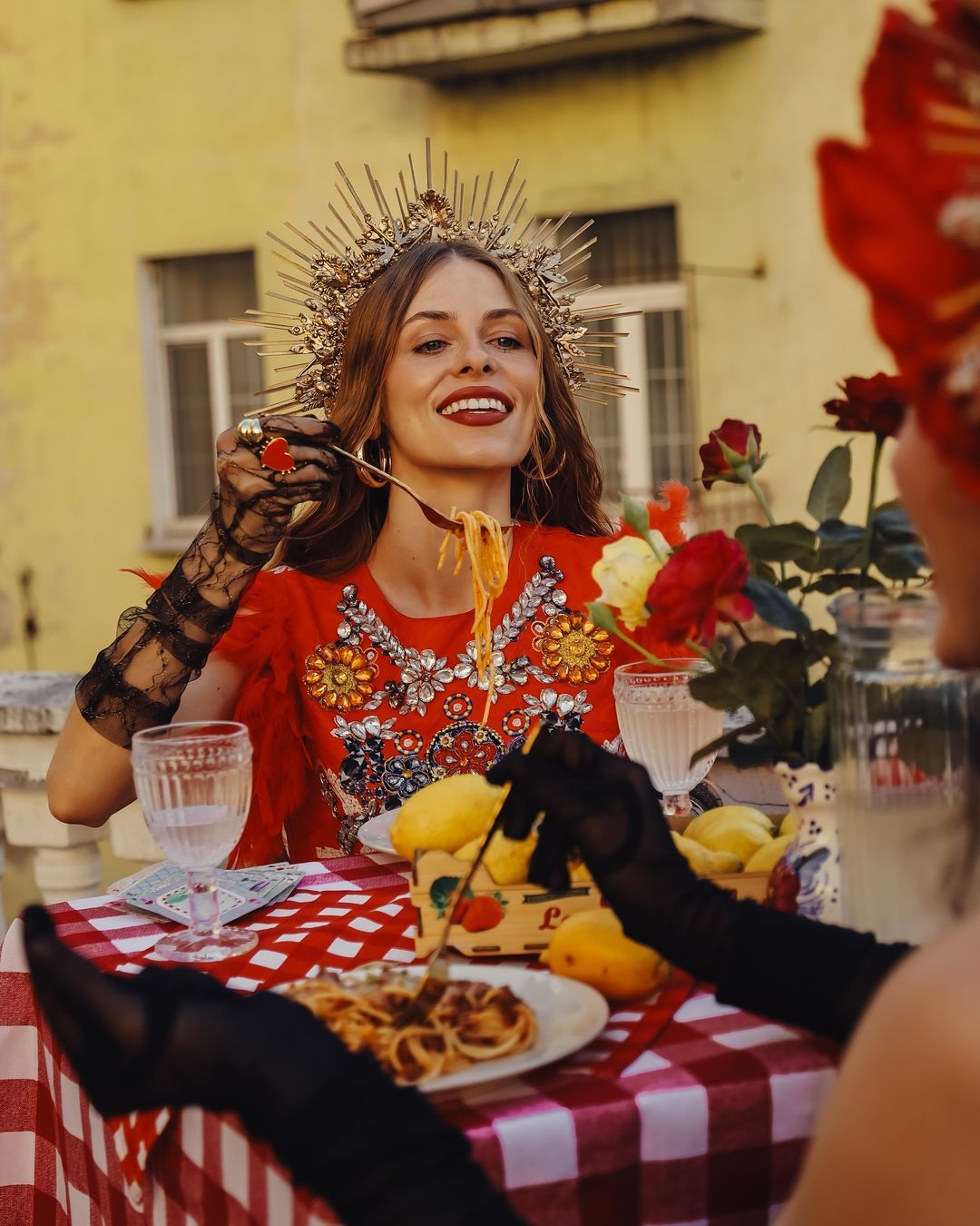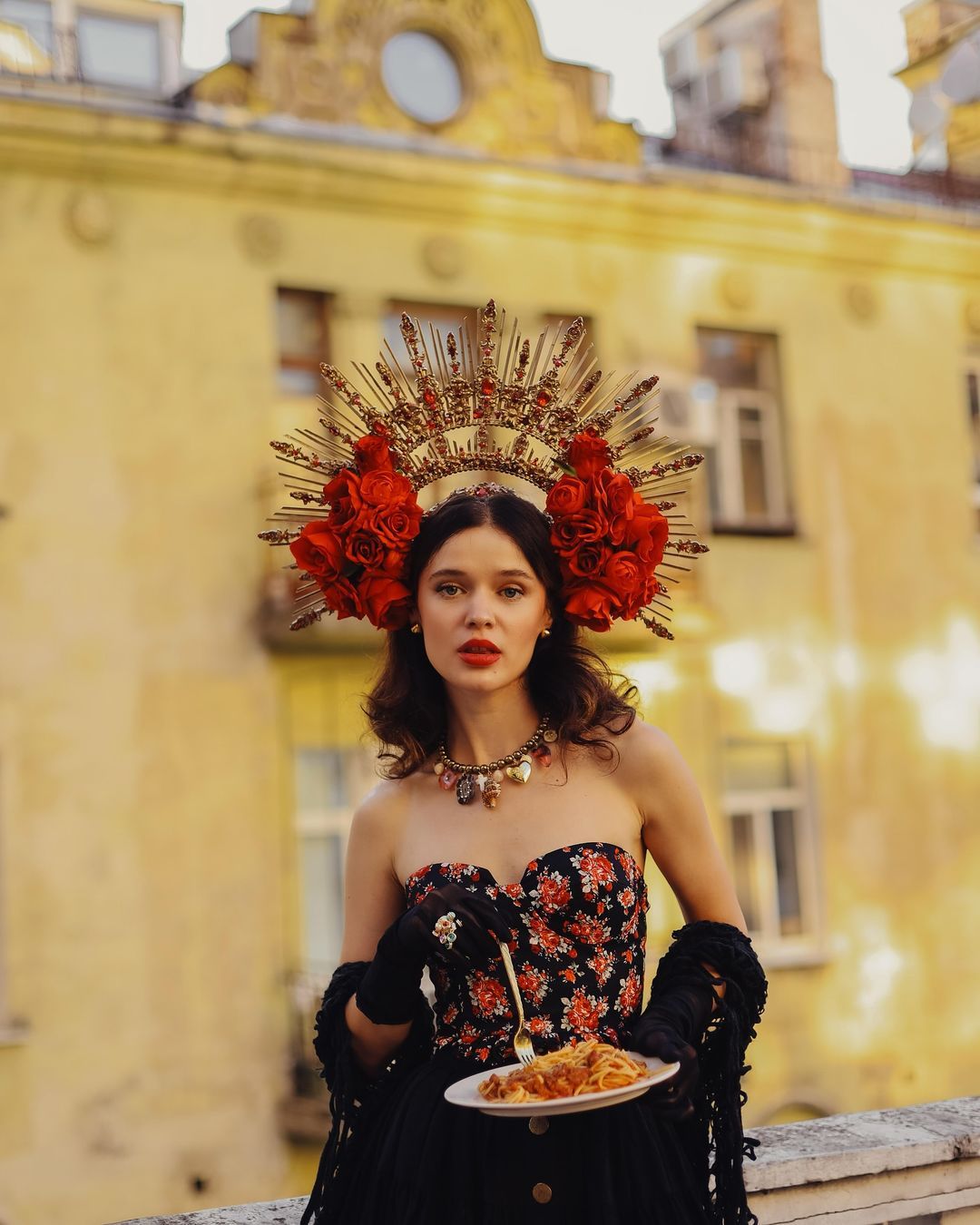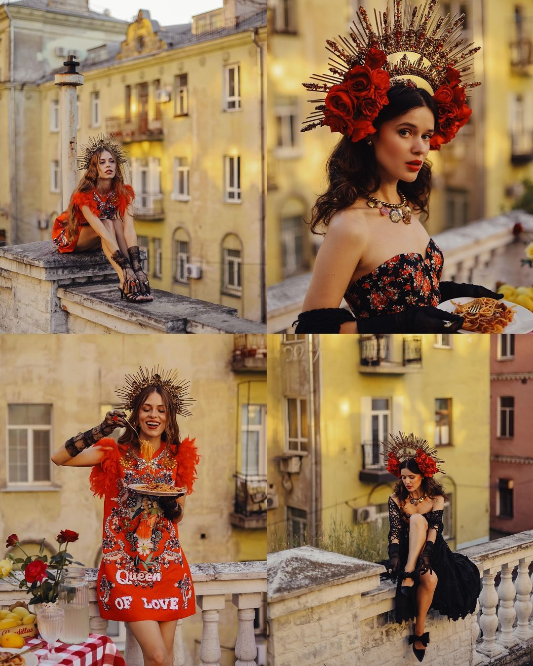 Так, еще год назад Анастасия нашла на секонд-хенде качественную реплику известного платья от Dolce & Gabbana. Девушка заплатила за нее всего 200 гривен, хотя одежда была идентична оригиналу и заметить разницу очень сложно. Больше года Анастасия думала, как интересно можно стилизовать платье для фотосессии, и в июне 2024 года с подругами она смогла воплотить давнюю задумку.