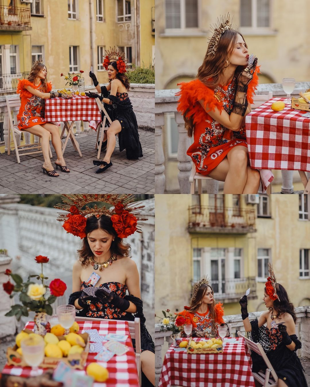 Анастасия вместе с подругами Анной и фотографом Татьяной Англичановой буквально воссоздали "итальянский дворик" посреди Киева. Интересно, что девушки воспроизвели не только образы, но и эстетику стиля Dolce & Gabbana.