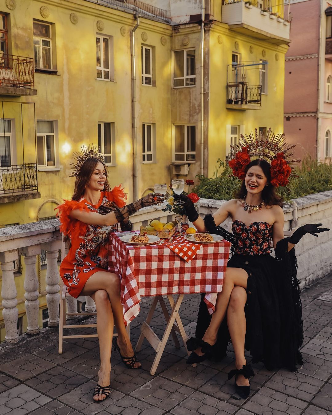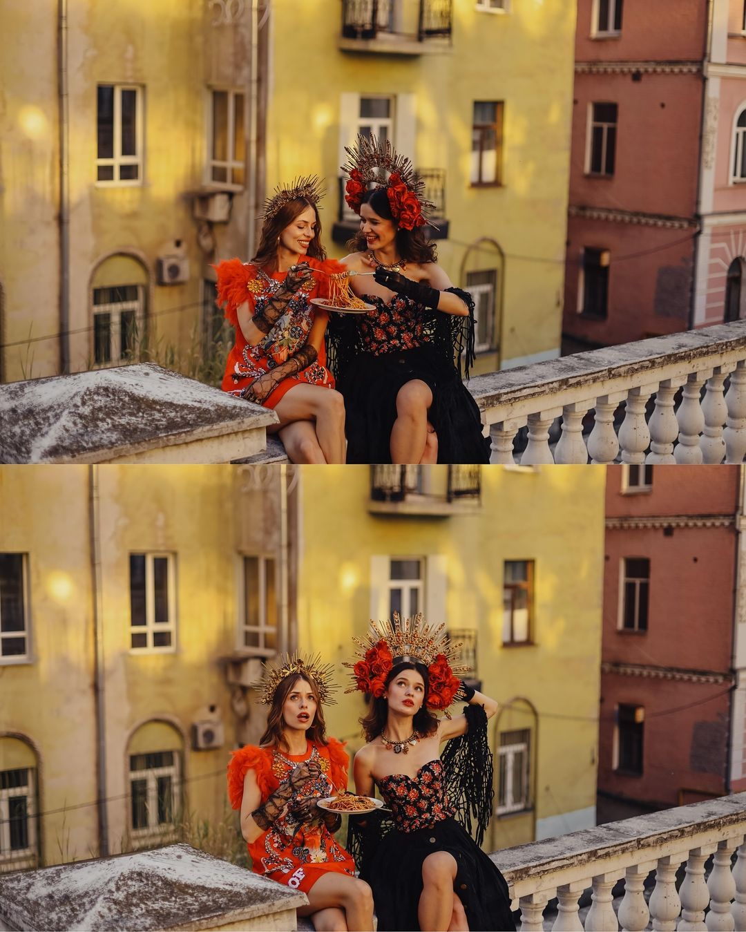 Стоит заметить, что во время фотосессии девушки также вдохновлялись оригинальным кампейном Dolce & Gabbana.