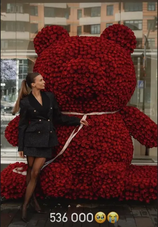 Для создания фигуры из мишки использовали более 10 тысяч красных роз, а цена его составляла впечатляющие 536 тысяч гривен, пишет 24 Канал со ссылкой на Threads Анастасии Скальницкой.