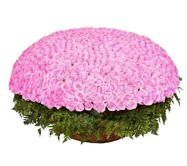 Приобрести огромный букет розовых роз с декоративным оформлением папоротника в корзине обойдется в 79 995 тысяч гривен. На эту композицию действует скидка, потому что раньше цветы стоили 100 005 гривен.