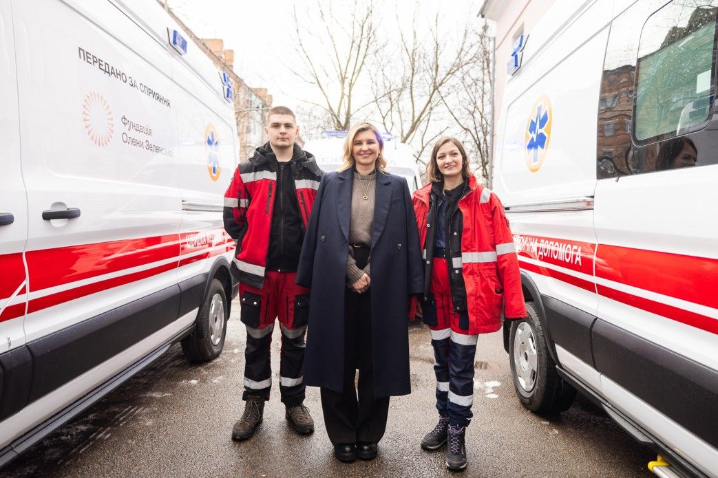 На початку лютого перша леді відвідала Чернігівщину, що постійно потерпає від ворожих обстрілів. Під час поїздки громадам передали карети швидкої допомоги та гаджети для онлайн-навчання школярів.
