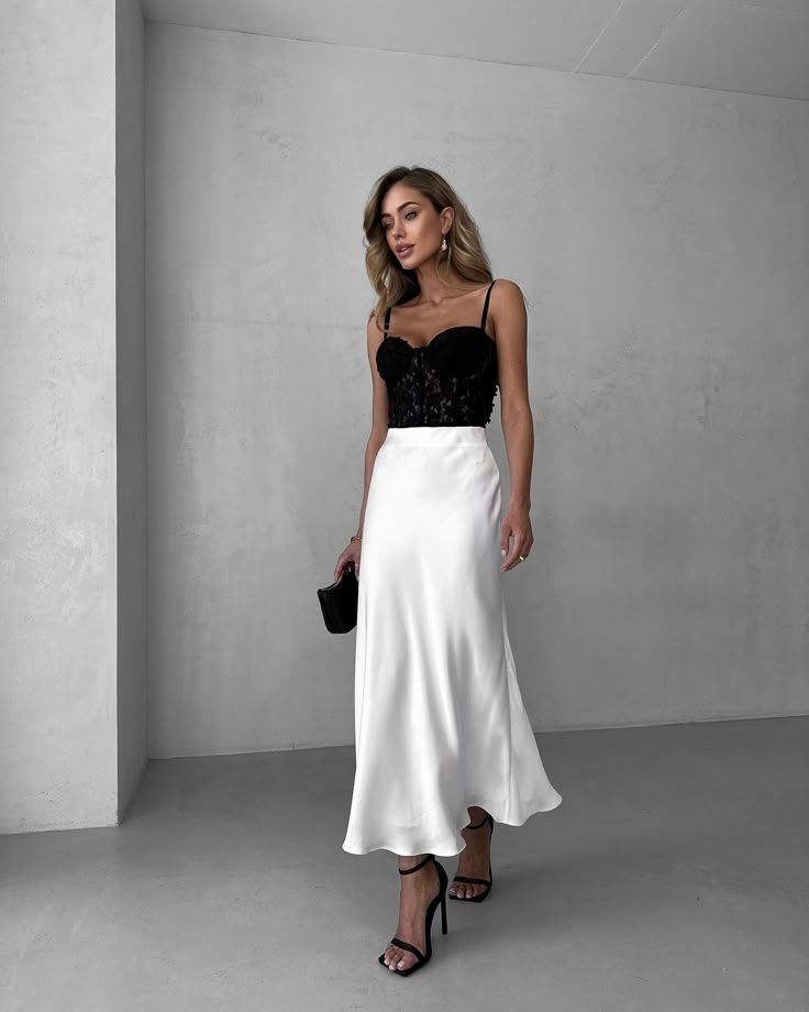 Такий образ чудово замінює сукню. До того ж він набагато практичніший. За допомогою різних кольорів верху та низу, можна створити по-справжньому унікальний лук.