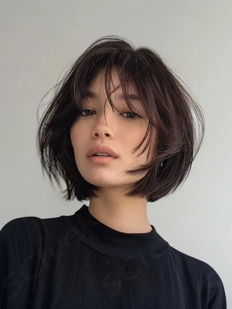 Стрижка має характерний чубчик, довжину до підборіддя й нерівні кінчики. Зачіска підійде тим, хто має овальне чи квадратне обличчя. Французький боб ідеально підкреслює вилиці й обрамлює обличчя. Стилісти радять укладати волосся круглою щіткою.